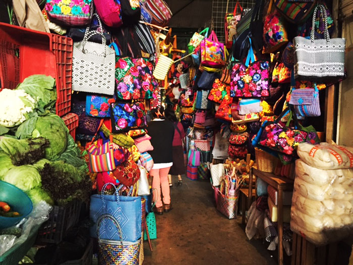 En los mercados de Oaxaca se vive la fiesta, todos en movimiento y murmuros por doquier, todos se conocen, se puede decir que es una familia grande. Te diviertes y si pasas te convencerán con sus piropos, todos son muy amables y veras colores en su vestimenta; mujeres con sus mandiles, trenzadas y con huaraches en un tapete vendiendo nopales o flores que amenizan con su aroma y colores. Las marchantas en sus puestos preparadas para ofrecerte sus productos. Todos se encuentran en secciones, si buscas pan de yema pides indicaciones de cualquier puesto y te direccionan. En los mercados orgánicos encuentras productos naturales, cuentan con sus propias cafeterías y puedes disfrutar de un café de olla o un chocolatito caliente en una taza de barro artesanal.